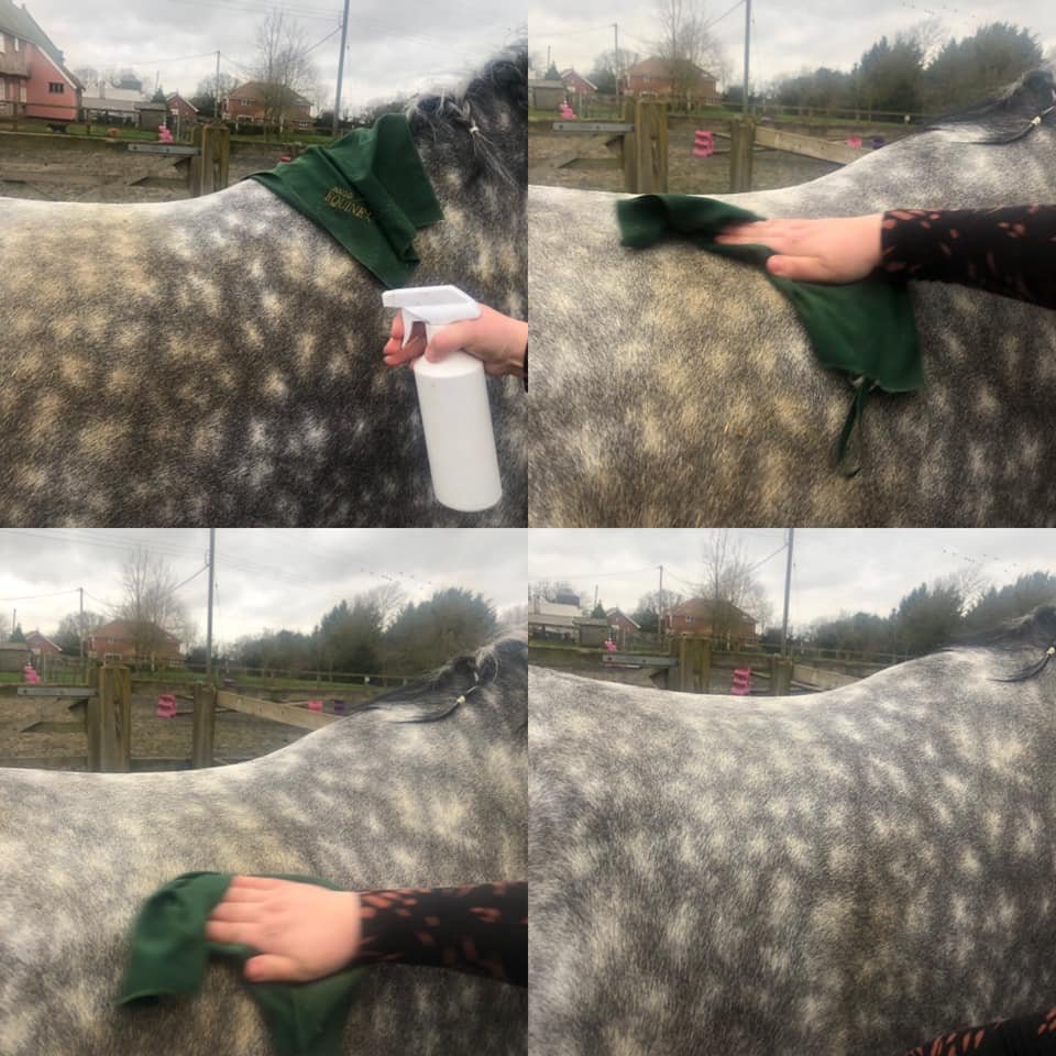 This unique formulation has been specially created as a spray on, leave in stain remover and coat conditioner. Using a blend of organic oils well regarded for their grease stripping and stain removing properties, Simple Solution Stain Remover is effective on stable and grass stains as well as stubborn discolouration caused by tack and wet rugs. Suitable for the most sensitive skin, Simple Solution Stain Remover can be used on any colour, but is especially effective on grey and white coats. Can also be used as an all body cleanser, simply mist the entire coat and then wipe clean with a damp cloth.
