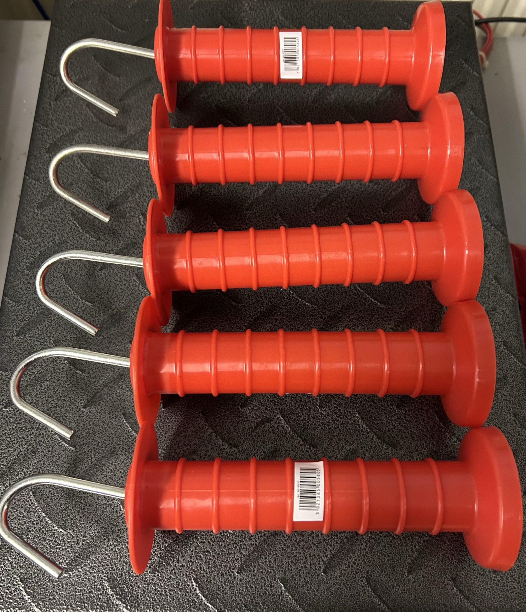 5 x Hotline Paddock essentials gate handles – Red Paddock essentials compression sprung insulated gate handle. Suitable for tape, rope and wire allowing easy access to gateways.