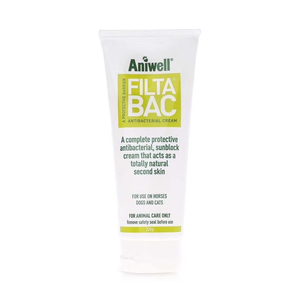 Super-easily absorbed into the skin, FiltaBac Antibacterial is a protective and effective antibacterial sunblock cream, formulated to nourish and condition the skin whilst offering superb security against bacteria. Suitable for use on horses and dogs. (Not advised to be used on cats without veterinary supervision.)