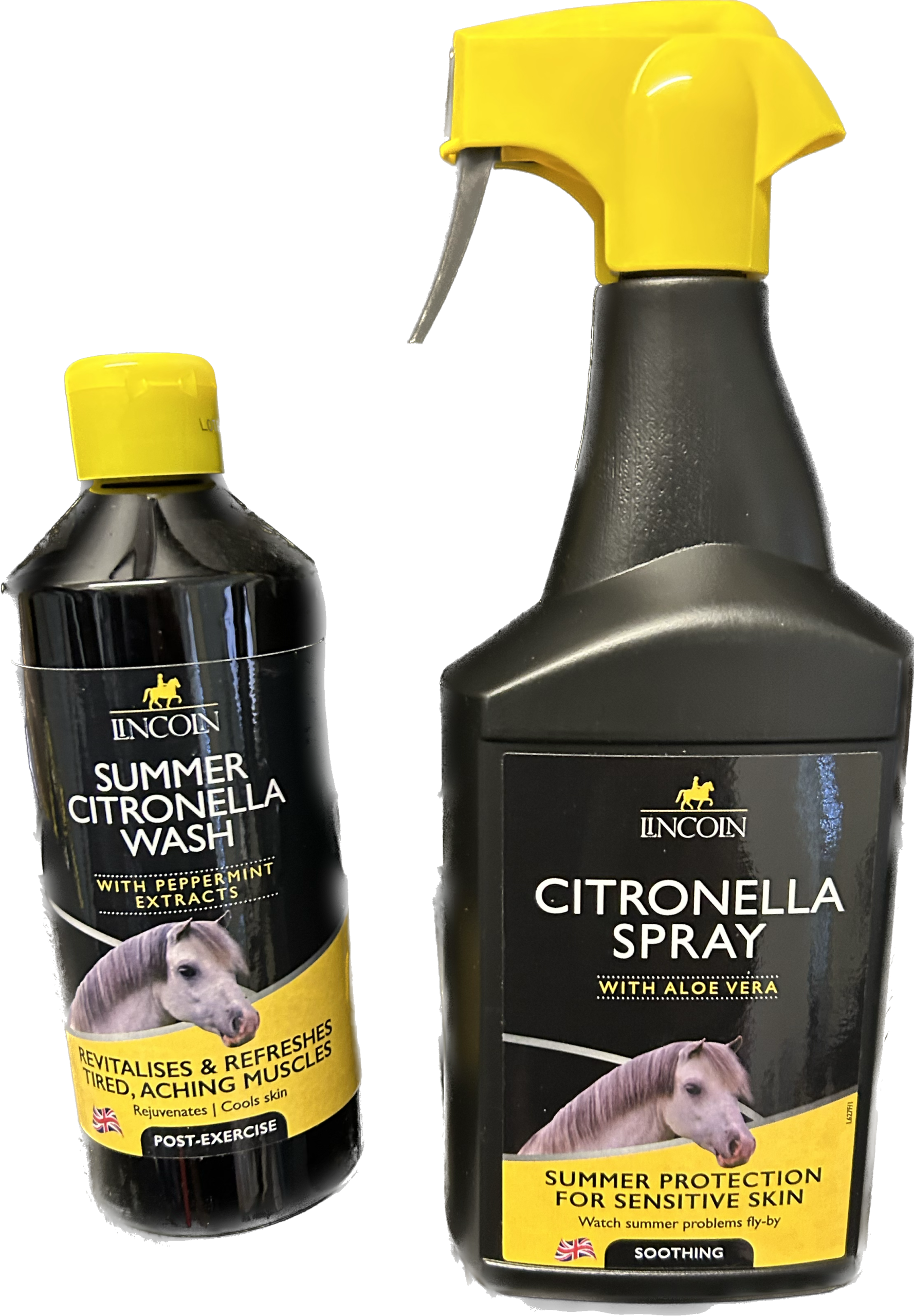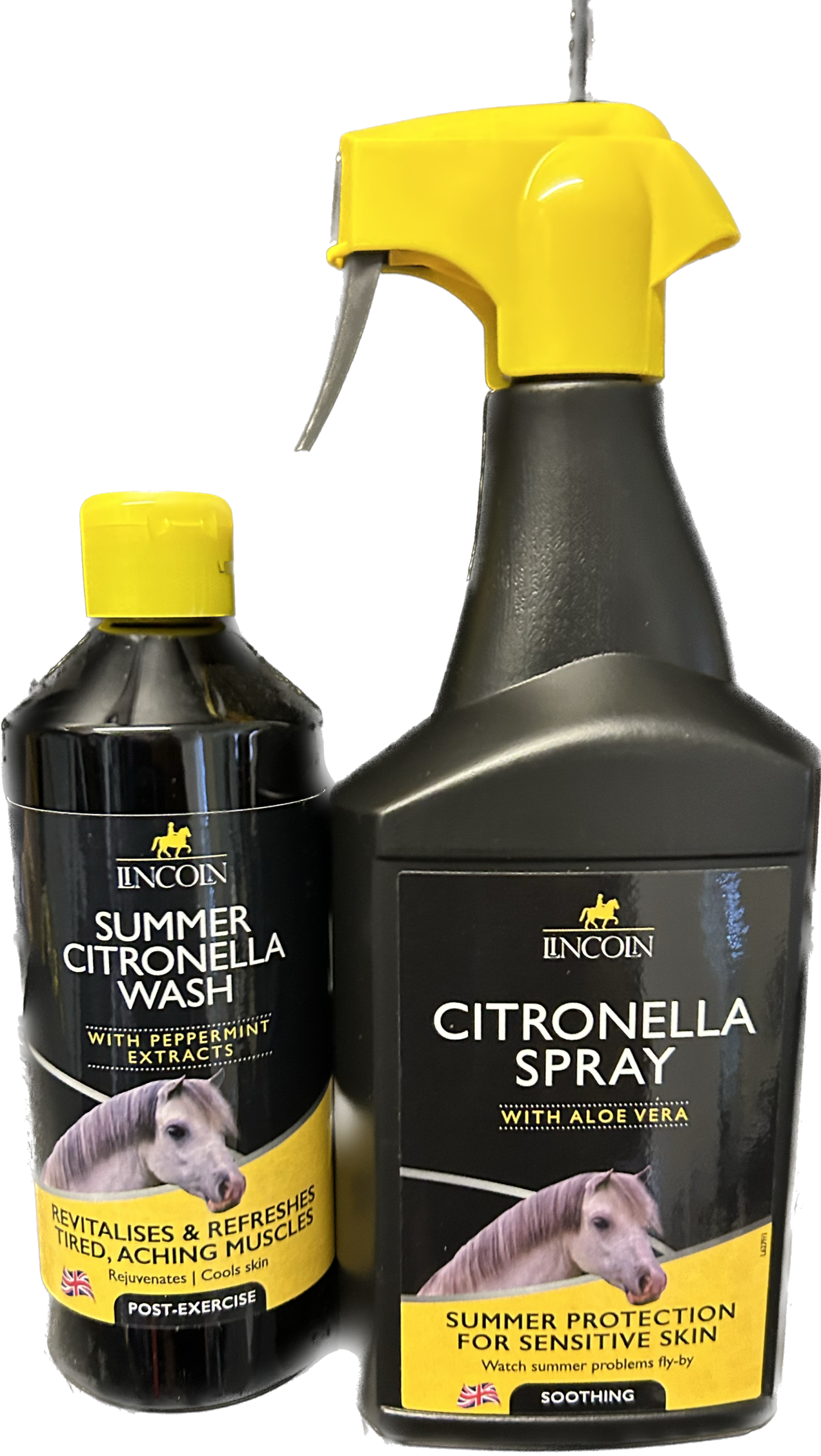 Lincoln Citronella Spray with Aloe Vera is the perfect solution for effective summer protection for your horse’s skin. Contains natural Citronella Oil to deodorise the skin together with Aloe Vera to moisturise the skin and coat.
