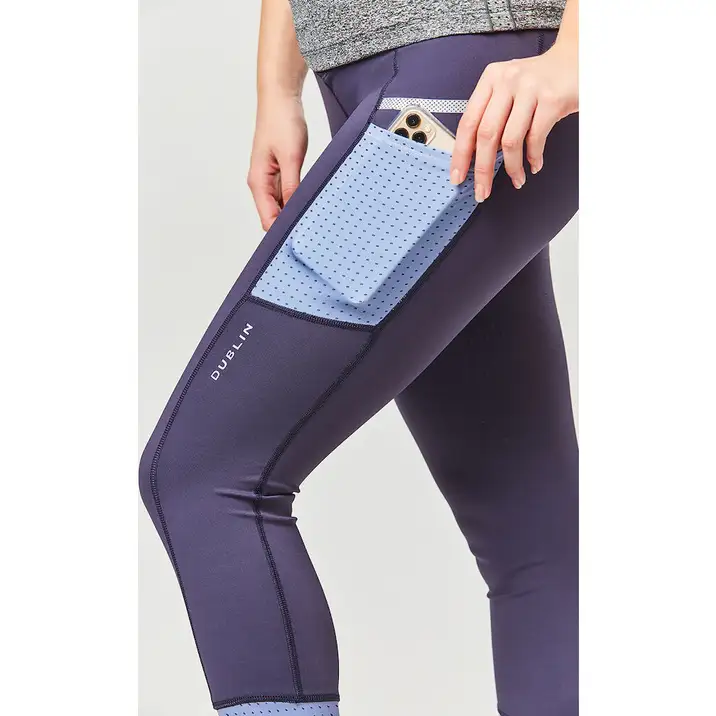 Your go to riding tights that you can wear in the yard or while being active. Athletically designed with stretch polyester fabric and technical features that include Comfort Dry technology. This system ensures any moisture dries quickly to keep you cool, comfortable and dry. Modern colour block panels for that athletic look. Side phone pockets and cuff in laser mesh, that’s a perforated fabric. Back zip pockets to store your essentials. Seamless Ezi-Grip Gel full grip silicone print seat for stability.