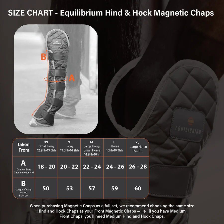 To support mobility, aid joint function and maintain healthy tendons. Designed to allow the unique magnets to be placed directly on the hock joint. Includes four moveable magnets to place where the horse needs them. Use an alternative to stable bandages to keep the legs and joints warm and maintain circulation. Ideal for ridden horses, veterans, horses on box rest or standing for long periods of time. Can be used with the Equilibrium Hot and Cold Packs. Comes with a one-year guarantee.
