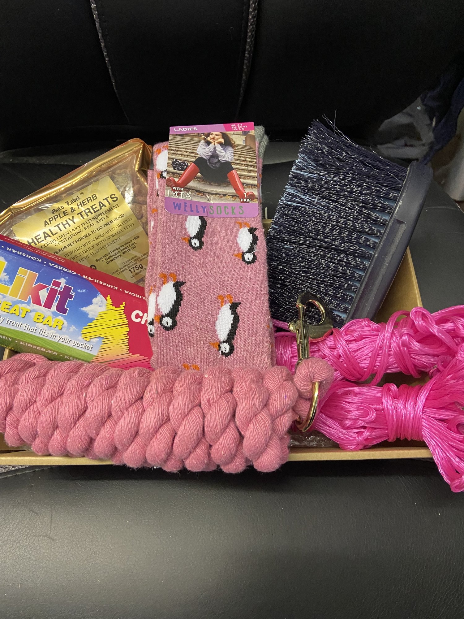 1 x Pair Welly Socks Elico Healthy Treat Bag 2 x Haynets 1 x Dandy Brush 1 x Lead Rope 1 x Likit Treat Bars