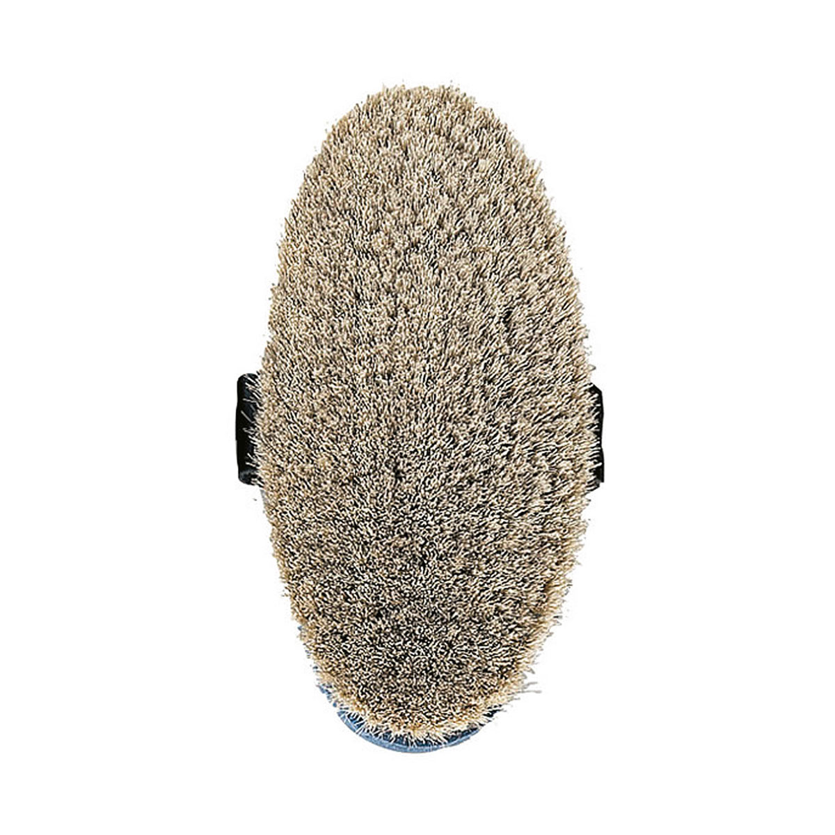 A brush with soft white horse hair for extra shiny results with a leather hand strap.