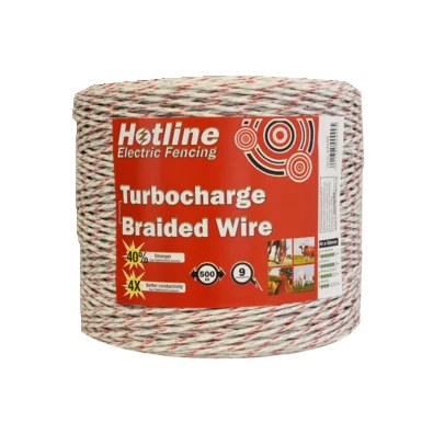 Braided electro wire with 6 stainless steel and 3 copper conductors. Ideally suited for longer distance fence systems.