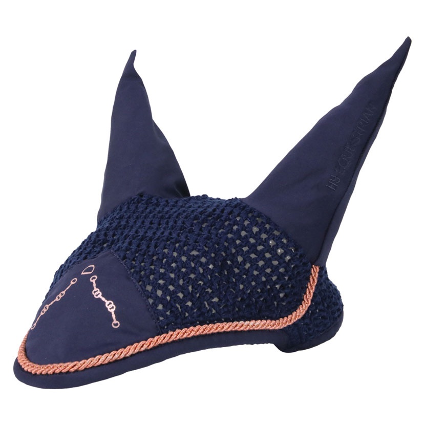 This stunning navy fly veil is finished with gorgeous rose gold braiding and delicate bit and stirrup detailing to the front, making this ideal for everyday or smart enough for best.