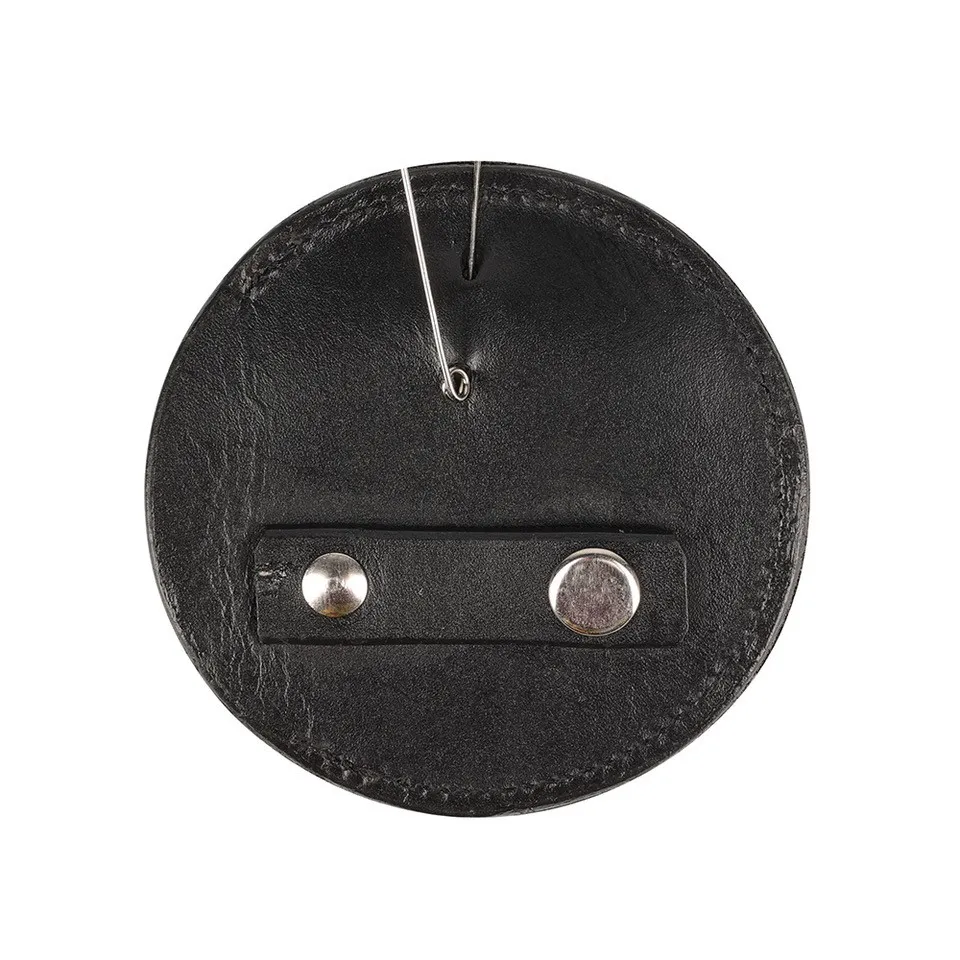 Add the finishing touch to your competition wardrobe with this luxurious circular leather number holder. Featuring a leather loop with stud fastening and pin so you have the option of how to securely fix to your bridle or saddle pad. Finished with embossed metal pin for a smart finishing touch.