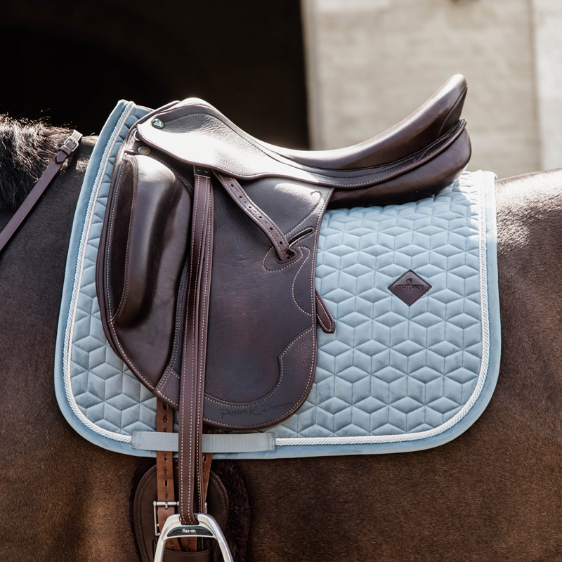 Kentucky Horsewear presents the luxurious Velvet Dressage Saddle Pad, marrying style with functionality for the discerning equestrian. Painstakingly detailed, this saddle pad not only enhances your riding attire but also promises maximum comfort and performance for your horse.