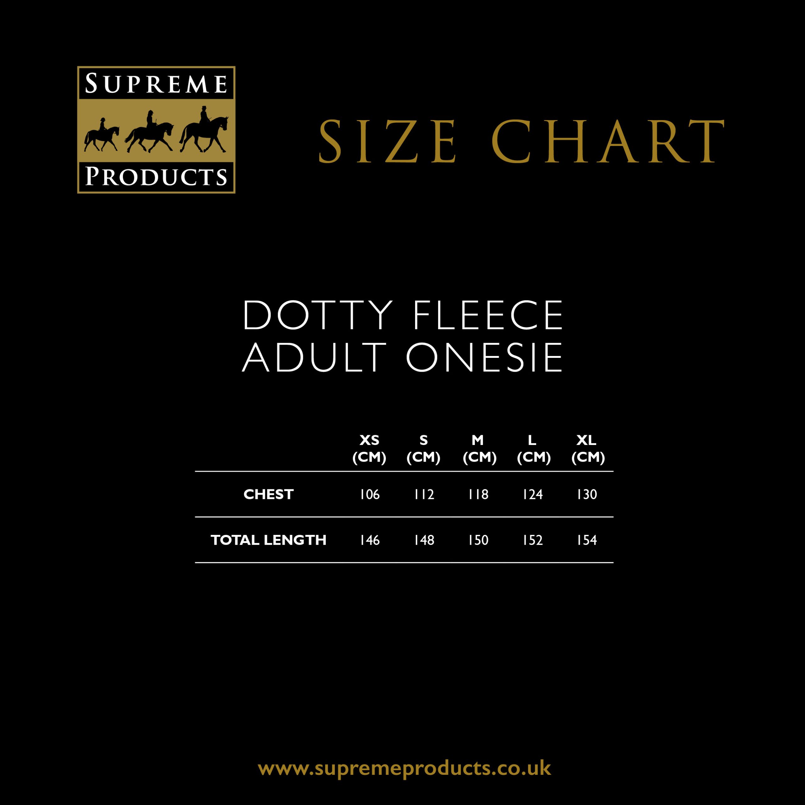 It’s finally here – the one you have all been asking for! An adult version of our best-selling Dotty Fleece Onesie. Made with super soft, high-quality fleece, this stylish and practical eye-catching polka-dot onesie is sure to keep you clean and cosy at competitions and nights away in the lorry. Featuring a hood for that extra snug feeling and two pockets perfect for keeping treats in, who isn’t going to want one?! Team with the other items in the Supreme Products Dotty Fleece Collection for a look we are loving.