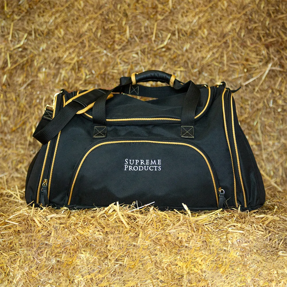The ultimate bag for taking to competitions! Super smart and practical, this bag has plenty of room for you to keep all your show gear together, and also makes the perfect bag for stay away shows. Featuring multiple pockets, grab handles and shoulder strap with leather padding for added comfort, there is even somewhere you can pop your show cane. Beautifully finished with leather and gold detailing. Matches with the rest of the Supreme Products luggage collection.